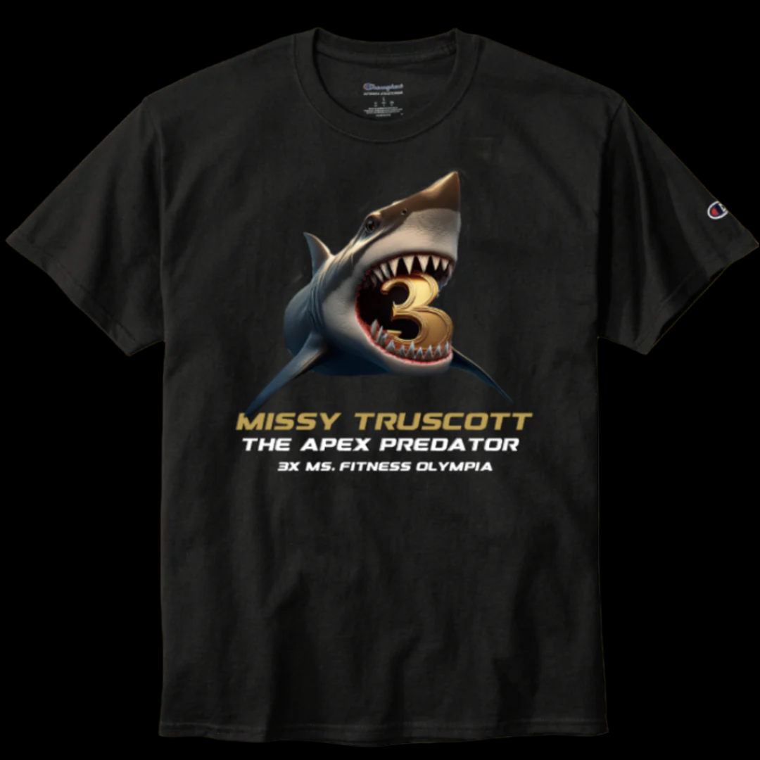 After tearing her ACL and meniscus during the routine portion of the 2023 Olympia, Missy fought her way back to the top to regain her title as Ms. Fitness Olympia in 2024. To honor the champion, this custom designed Apex Predator t-shirt represents everything she stands for.